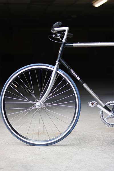 Bike is made of several steel parts to be light and trustworthy. Steel frame and fork. Old shimano pedals , rims and spokes are from steel. Combine with design of mine. VERSAČE
